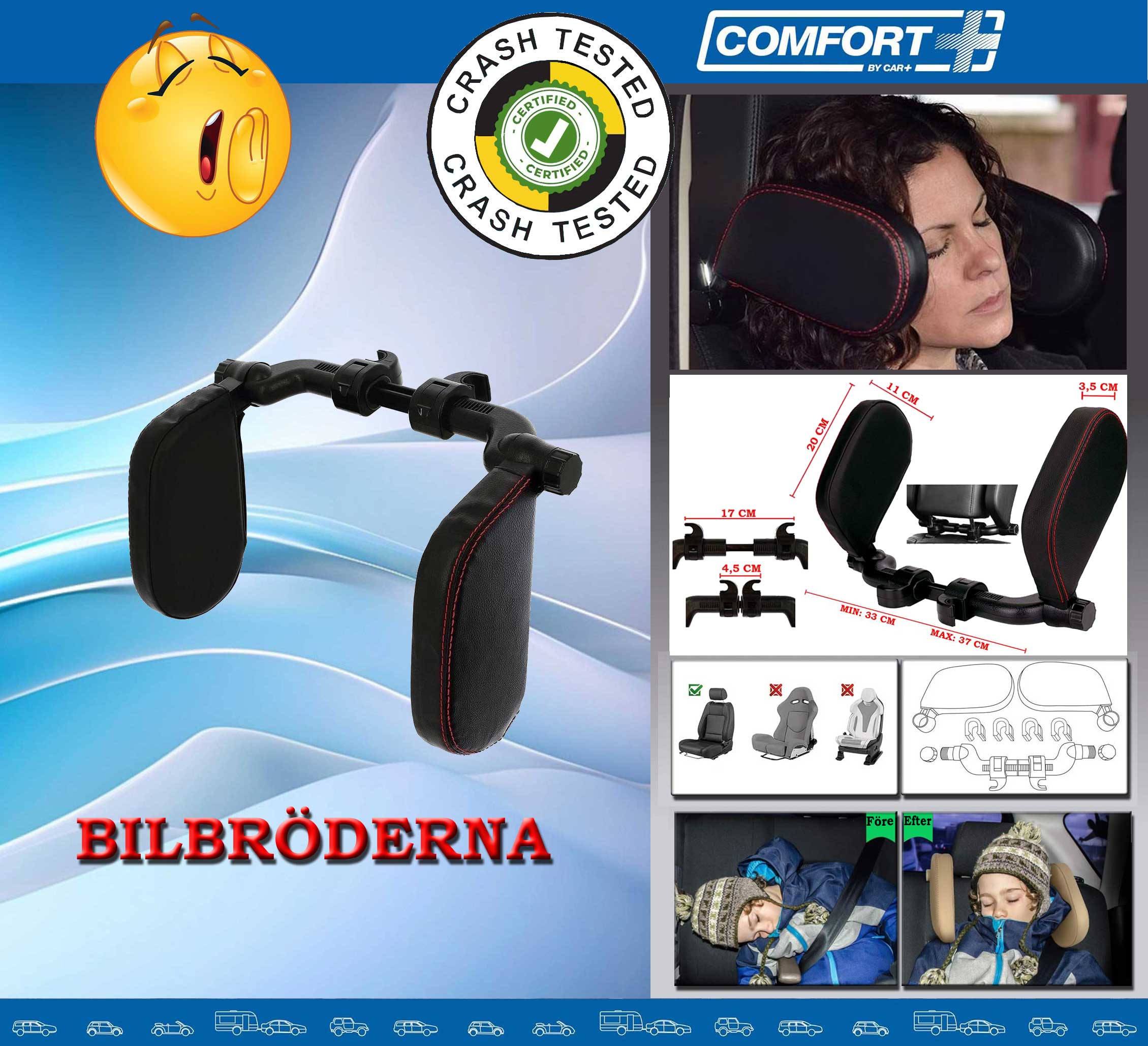på bilbältet. Vips har ni en skön och bekväm kudde att vila huvut på under